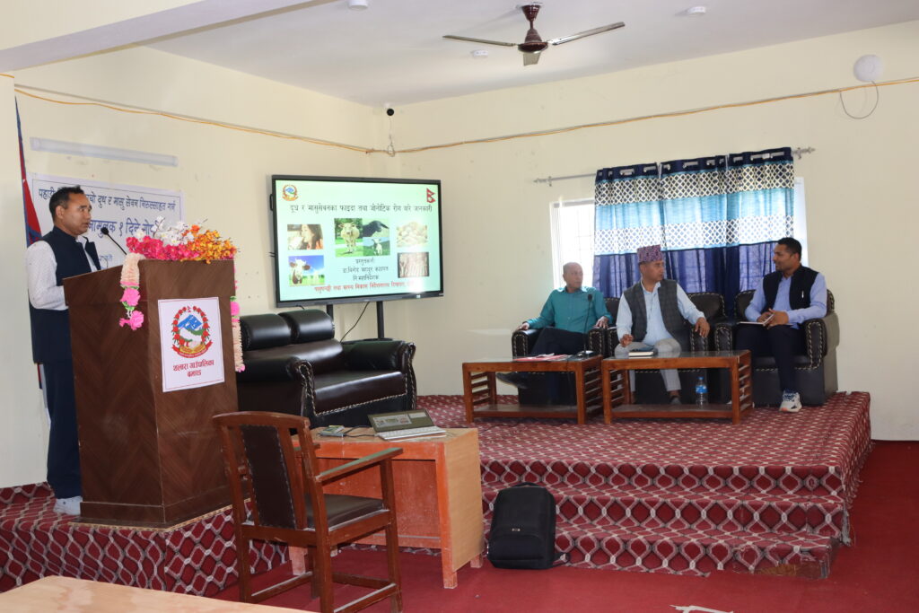गोष्ठीमा भैंसी पालक र बाख्रापालक कृषक तथा ब्यवसायिको सहभागिता रहेको थियो।कार्यक्रममा पसुपंछि तथा मत्स्य विकास निर्देशनालय दिपायल डोटीका महानिर्देशक डा. विनोद बहादुर कठायतले काँचो दूध र राम्रोसँग नपाकेको मासु सेवन गर्दा हुने विभिन्न सरुवा रोगका जोखिमबारे जानकारी गराइएको थियो। साथै, दूध उमालेर मात्र सेवन गर्ने, मासु राम्रोसँग पकाएर खाने, सरसफाइमा ध्यान दिने र पशुपालनमा स्वास्थ्य मापदण्ड अपनाउने विषयमा विशेष जोड दिनु भएको थियो ।